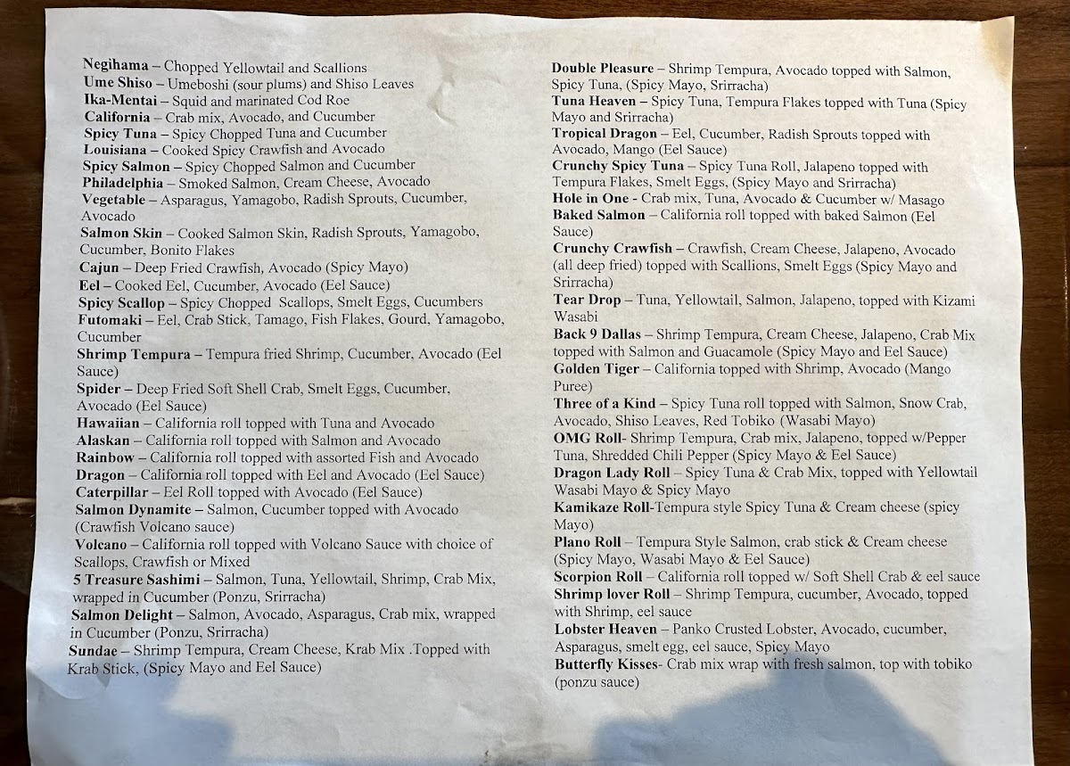 Specialty Roll Menu (J) 特色壽司卷菜單 (J)